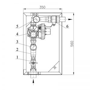 5. Tlakomer na výstupe.Vyhotovenie reg. stanice môže byť aj s uzáverom č.6 umiestneným vľavo (zrkadlový obraz).