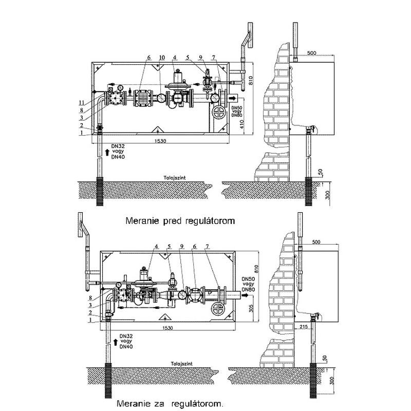 Plynomer je umiestnený pred regulátorom. Systém je vhodný aj pre obchodné meranie.